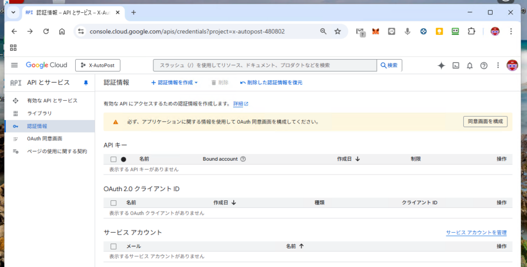 これには「Google Cloudでの設定(無料)」が必要です。少し手順が多いですが、これが終わればあとはコードを書くだけです。